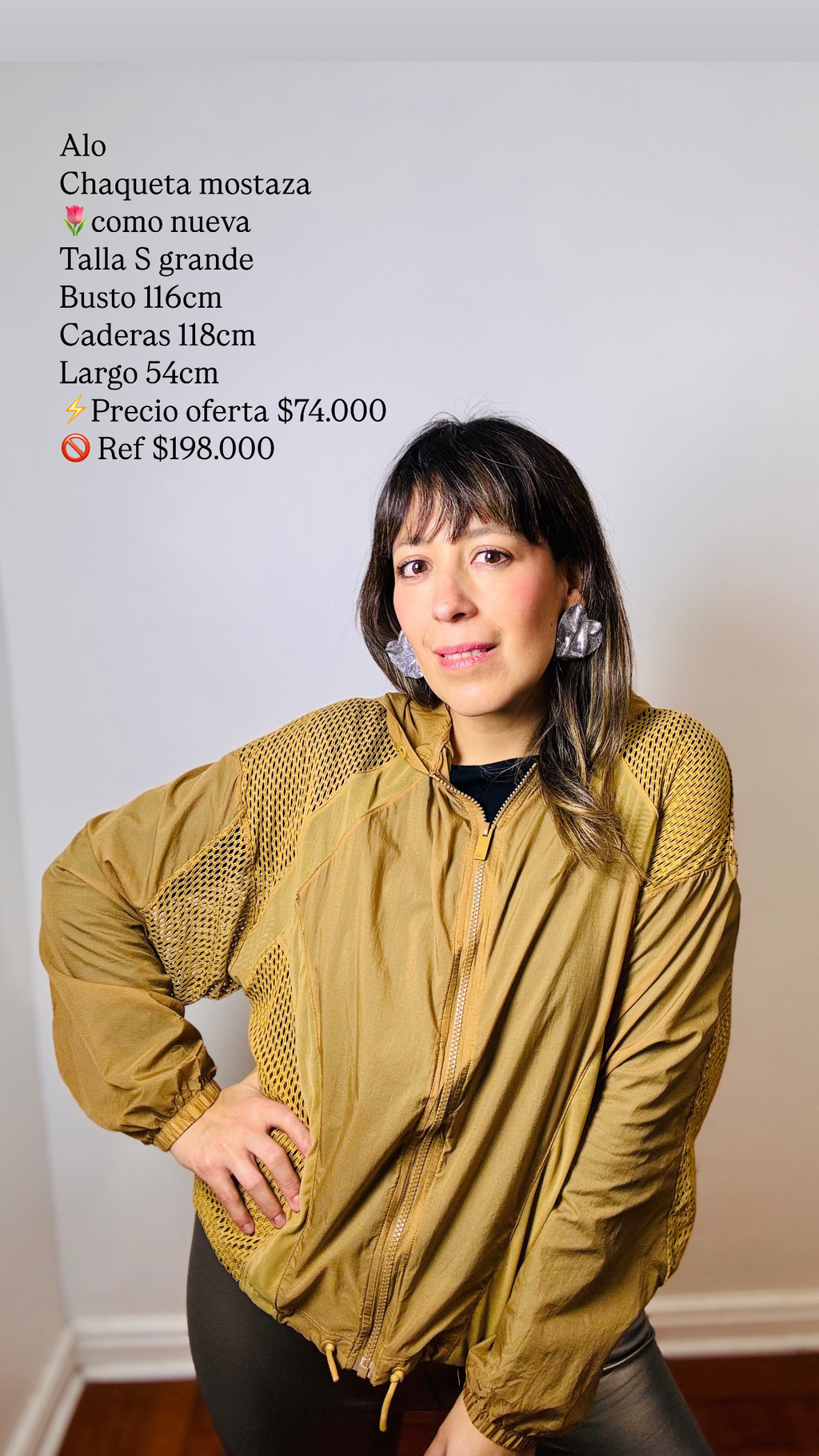 ¡DESCUBRE LA CHAQUETA ALO, TU NUEVO ALIADO EN EL YOGA! 🧘♀️ De la prestigiosa marca de yoga, esta chaqueta tipo cortaviento es perfecta para sentirte única mientras practicas. Con detalles de malla en color mostaza, combina estilo y funcionalidad, permitiéndote moverte con libertad. Ideal para los días frescos, su diseño ligero te mantendrá cómoda y a la moda. ¡No dejes pasar la oportunidad de transformar tu outfit y brillar en cada sesión! 🌟